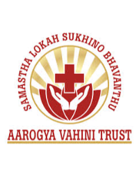 This is the logo of Aarogya Vahini Trust, a healthcare and social service organization. The design features a red medical cross held by caring hands, symbolizing healthcare, protection, and compassion. The rising rays represent hope and positive impact. The Sanskrit motto “Swastha Lokah Sukhino Bhavantu” means “May all people be healthy and happy,” reflecting the Trust’s commitment to community well-being and humanitarian service.